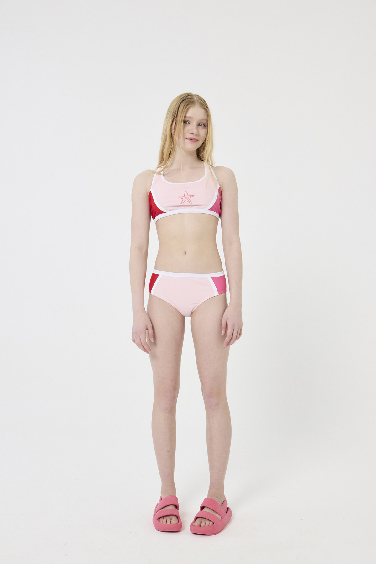 Verano, color y mucha onda. Este traje de baño lo tiene todo para que arranques la temporada con un look que no pasa desapercibido. Forma parte de SPLASH, la línea de BUDDIES pensada para el agua, la pile, el mar y toda la diversión del verano. El top viene con recortes en tres colores súper combinables y un bordado exclusivo en el frente que le da un toque único y lleno de estilo. Además, tiene breteles para que lo adaptes a tu medida y te sientas cómoda todo el día, desde la primera zambullida hasta el último atardecer. La bombacha tiene los mismos recortes tricolores, siguiendo el diseño del top, para lograr un conjunto canchero, moderno y con ese detalle que hace la diferencia. Hecho en tricot de alta calidad, este bikini no solo se ve increíble, sino que también acompaña cada movimiento con comodidad y buen calce. Subite a la onda Splash, llená tu verano de color y estilo con BUDDIES y preparate para vivir los mejores días bajo el sol.