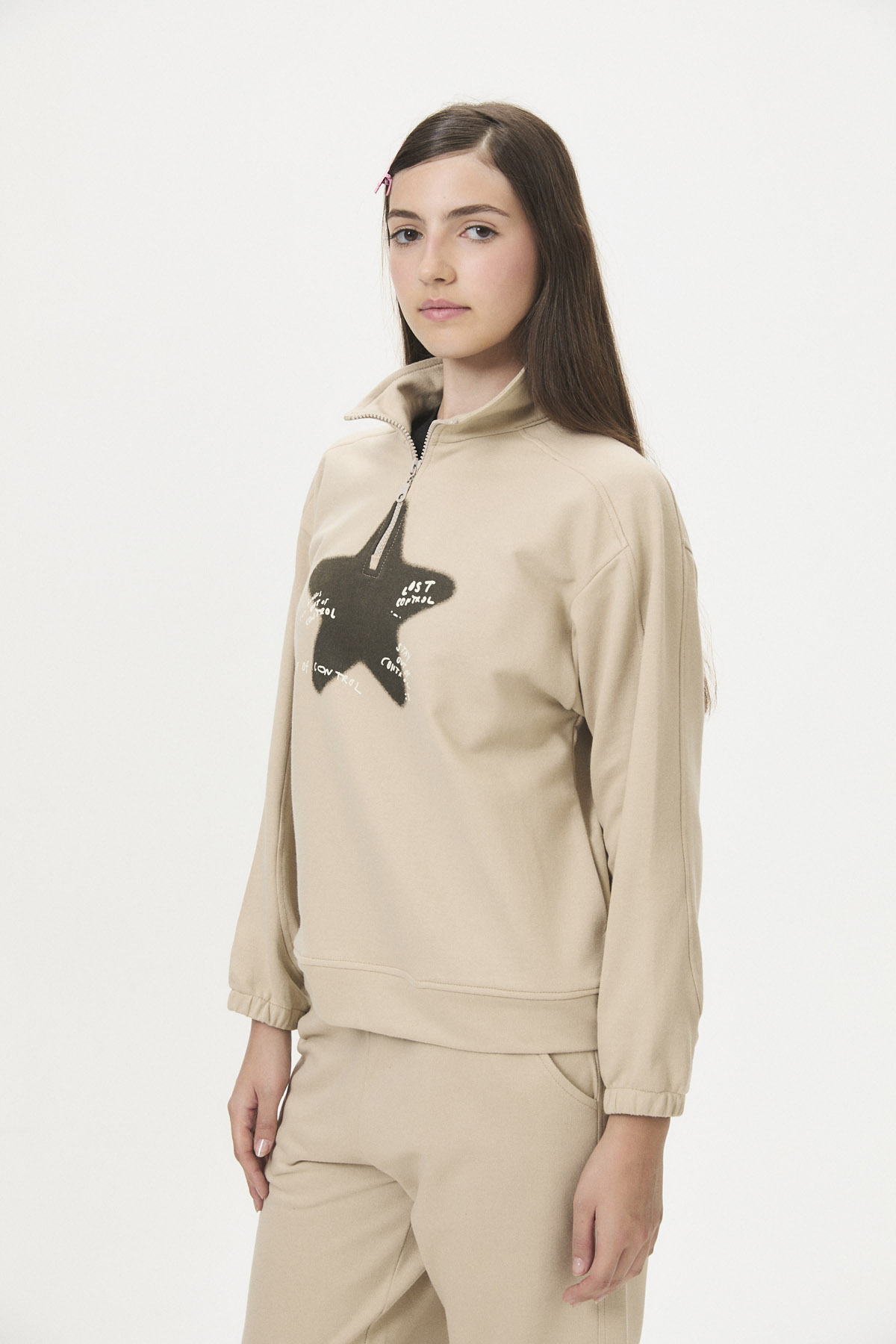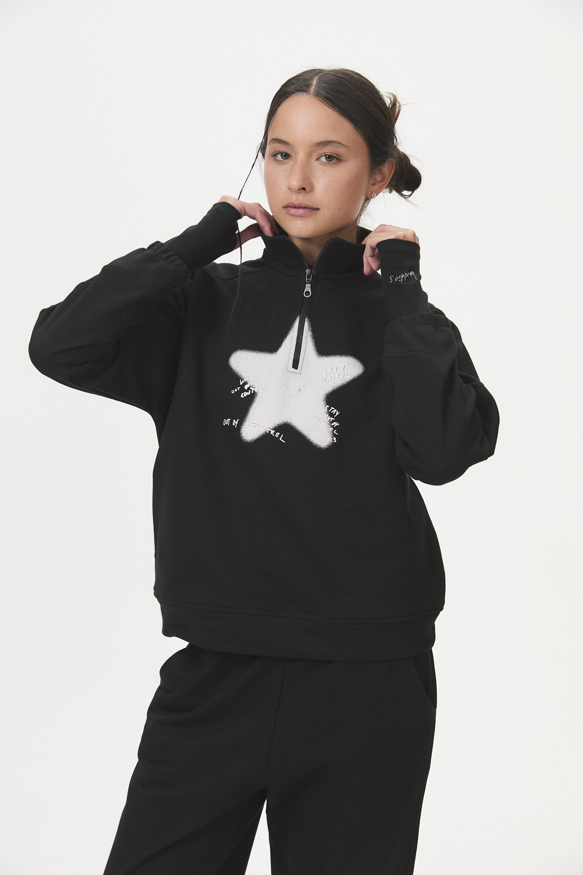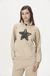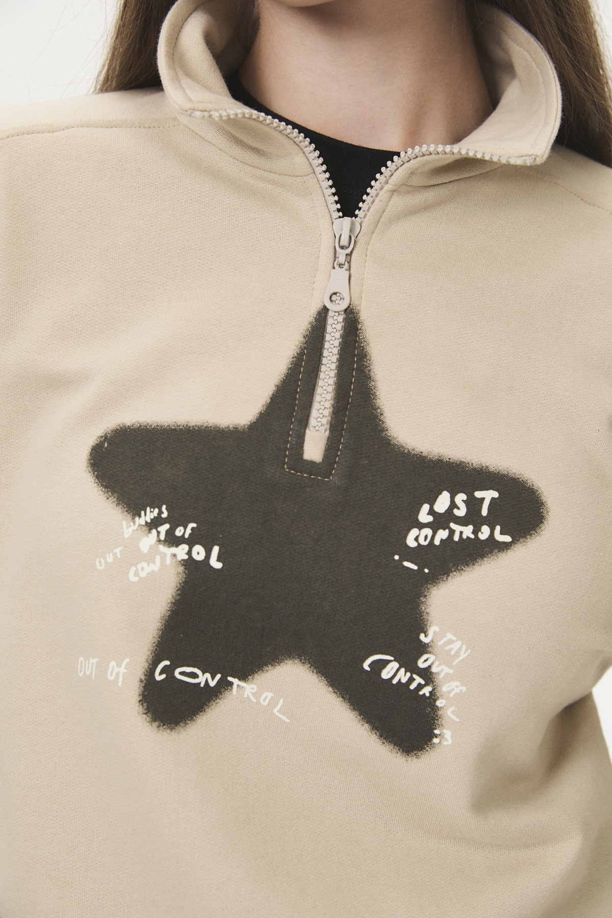 Un buzo de transición, perfecto para ese momento en el que el estilo se siente fuera de control. Confeccionado en rústico 24/1, algodón peinado 100%, ofrece la comodidad de un calce curva en talles pares. Presenta cuello mao con cierre, recortes modernos en hombros y mangas, y un estampado borroso e irregular en frente y espalda que refleja esa búsqueda de identidad propia. Ideal para un look urbano .