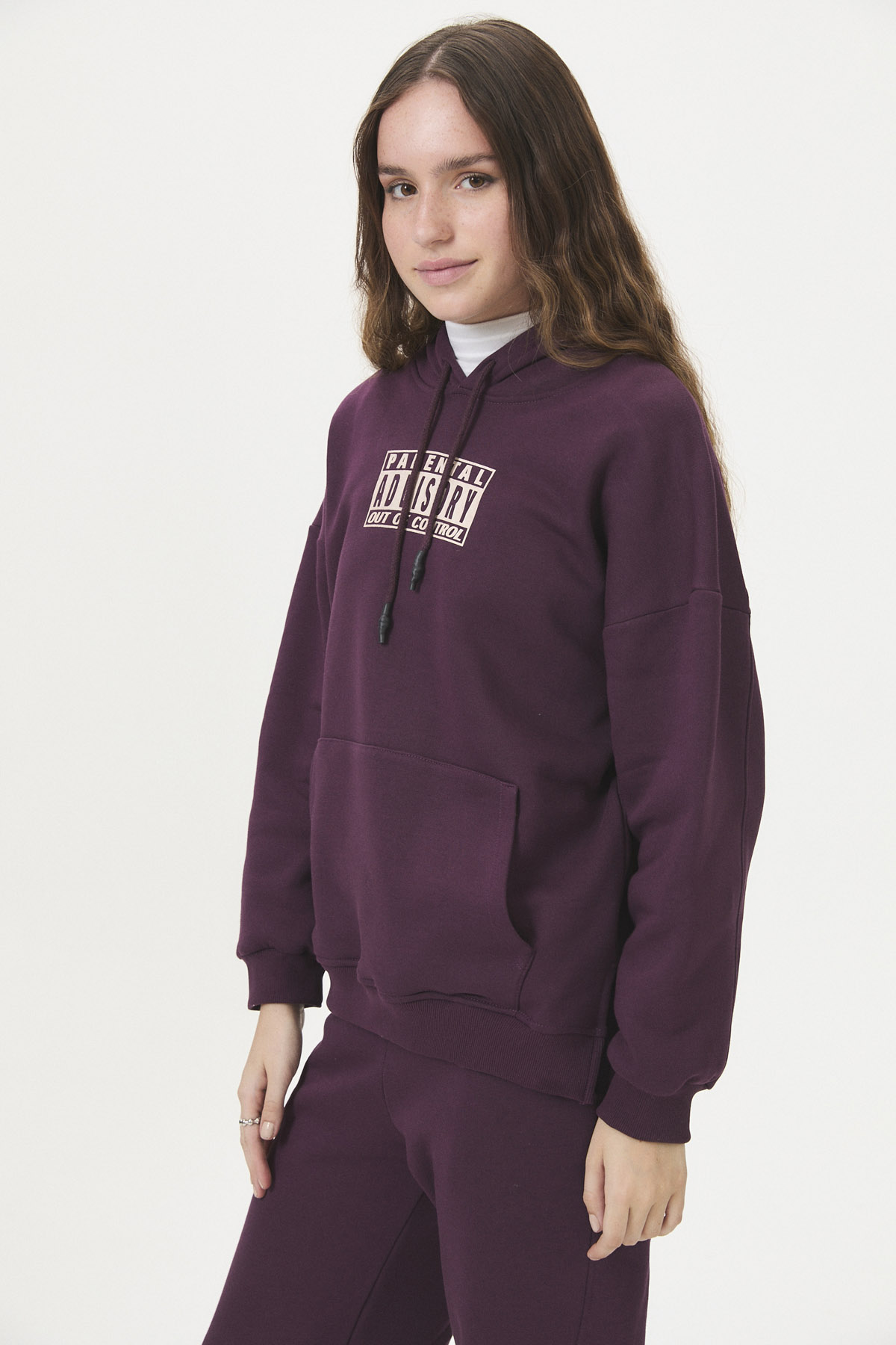 Esta prenda de transición te envuelve con su frisa suave (85% algodón, 15% poliéster), perfecta para esos días de búsqueda de identidad donde “todo se siente fuera de control”. Con capucha y bolsillo canguro, y un diseño con estampas borrosas, irregulares y desordenadas en frente y espalda, captura la estética de la cápsula OUT OF CONTROL, ideal para acompañar tus momentos urbanos mientras experimentás la curva de talles pares de una etapa de cambios.