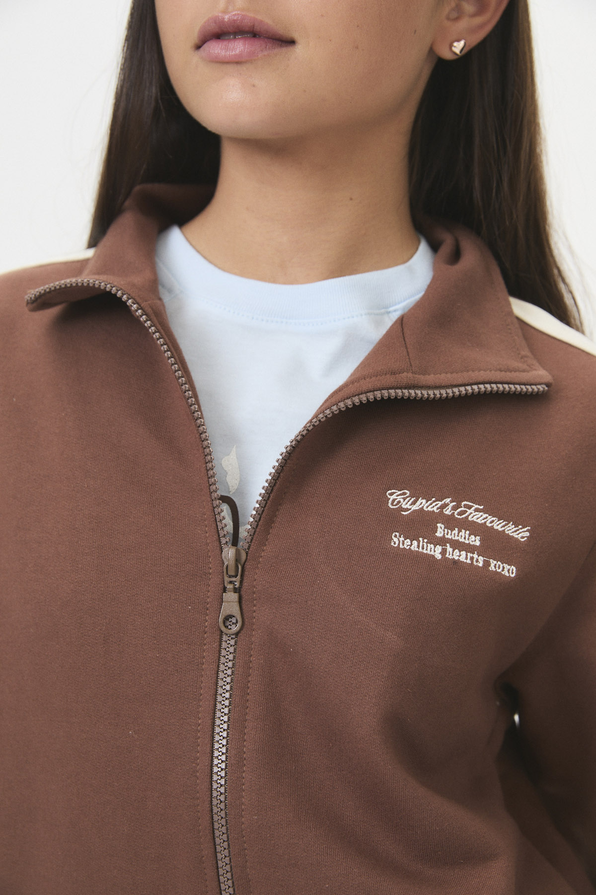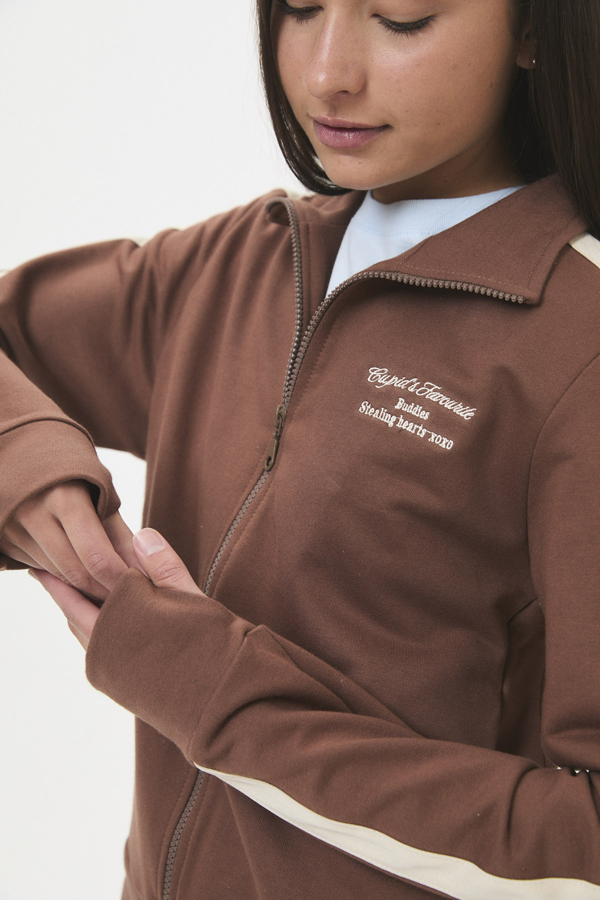 Esta prenda estilo deportivo, confeccionada en rústico 24/1 de algodón peinado 100%, es ideal para el uso cotidiano, con un corte amplio, cómodo y casual. Presenta detalles de tiras contratono en hombros y mangas, y un puño con abertura para pasar el pulgar. El bordado en el delantero y la curva de talles pares se alinean con la cápsula “CUPID’S FAV”, inspirada en ese sentimiento nuevo y un poco vergonzoso del enamoramiento, con una estética tipográfica “varsity” y motivos graciosos de cupido que niegan el amor. Perfecta para esos momentos de incomodidad dulce al expresar o recibir afecto.