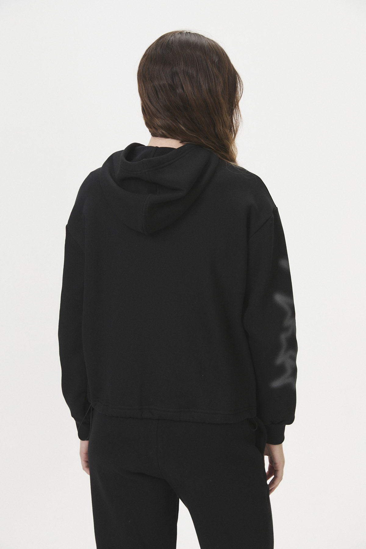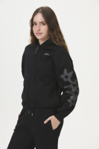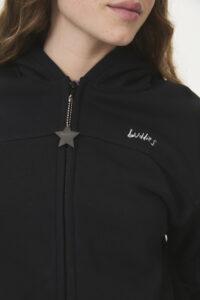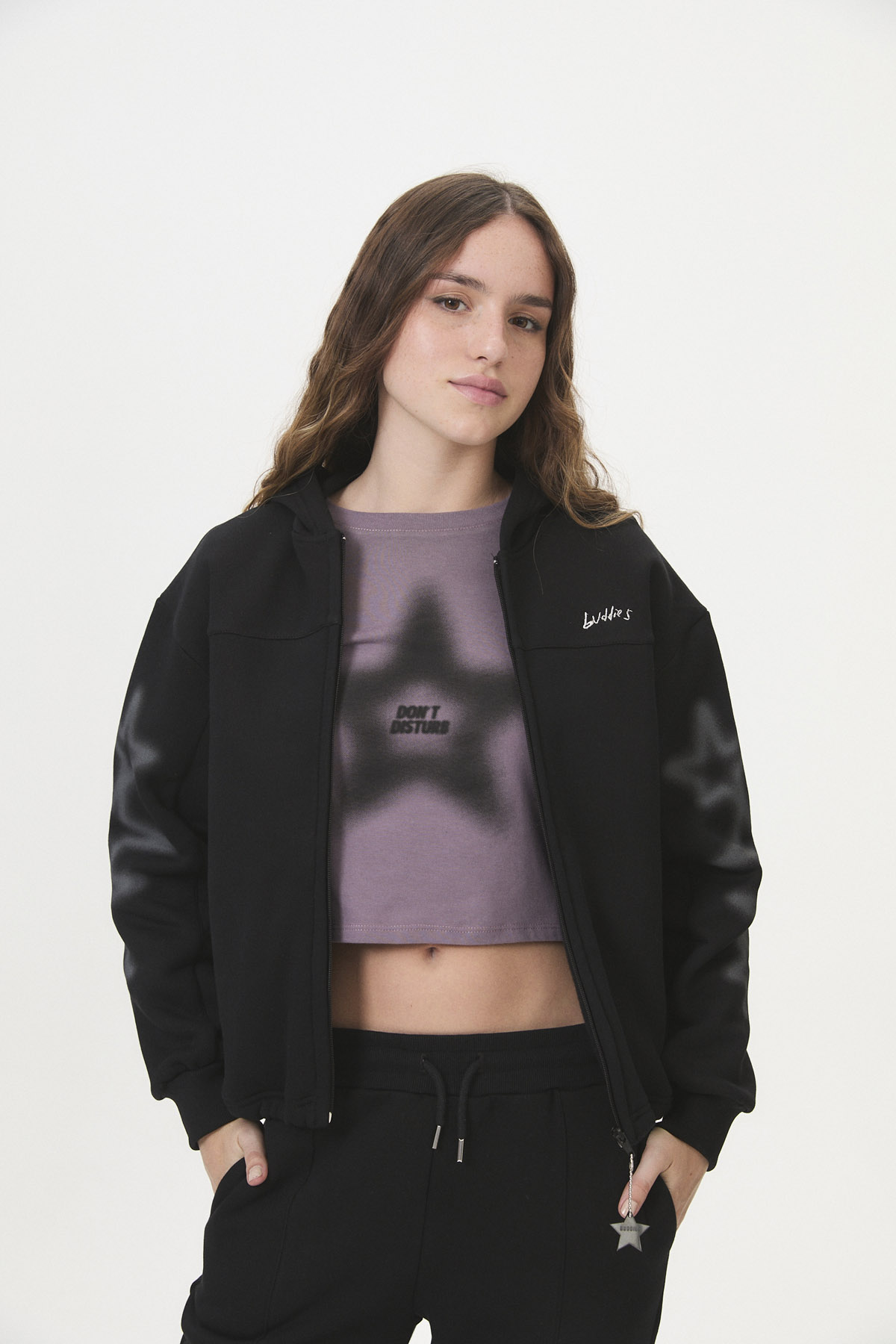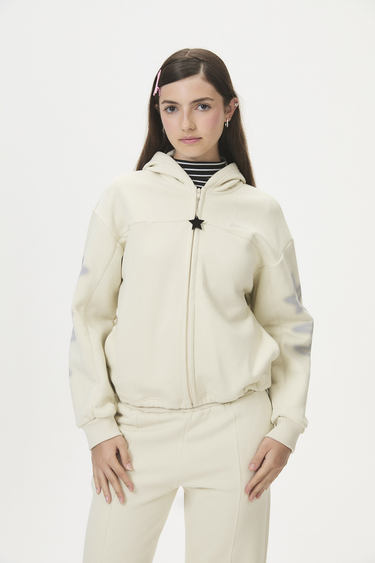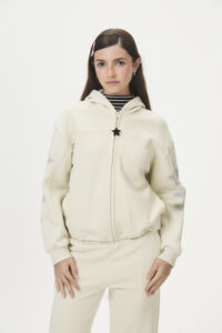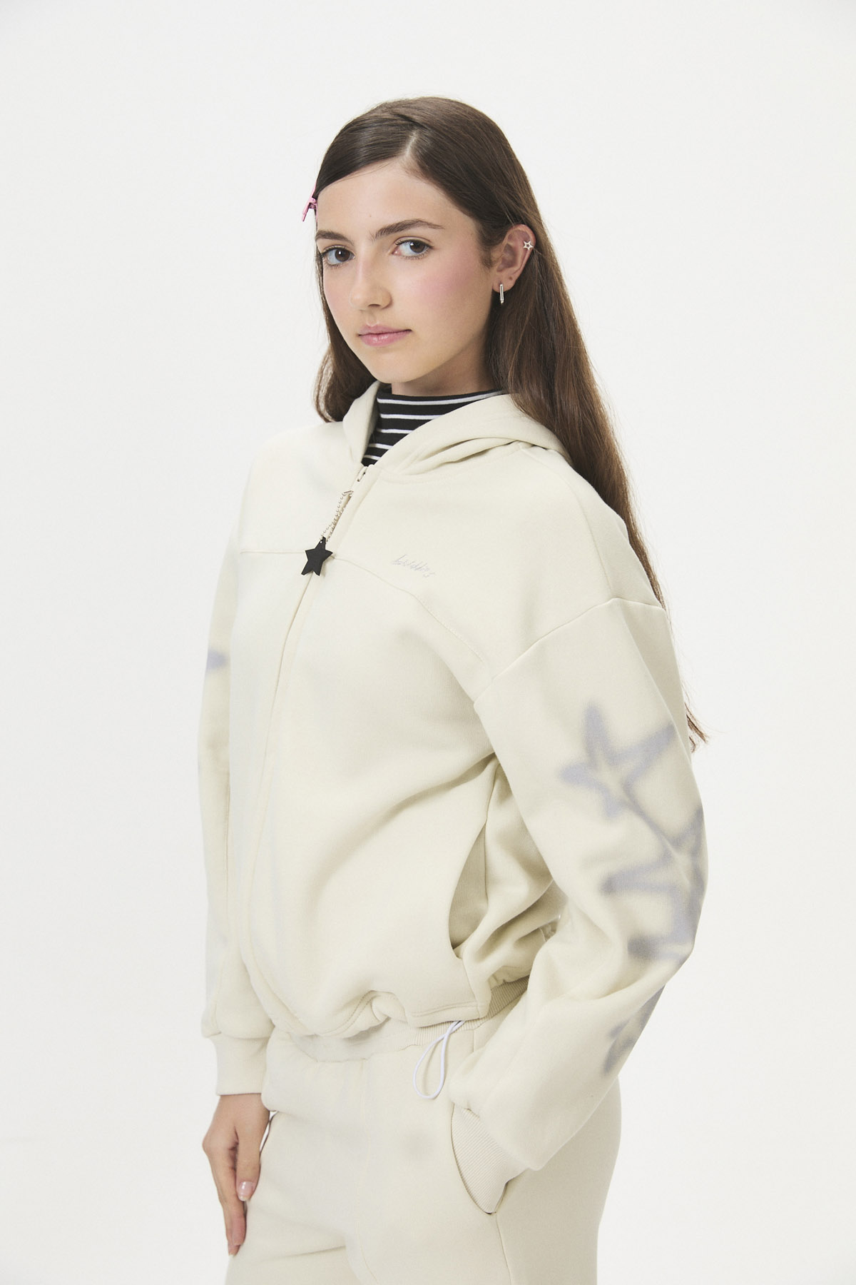Una prenda cómoda y versátil de frisa (85% algodón, 15% poliéster), ideal para los momentos de transición. Su diseño, con capucha, recortes en frente y mangas estampadas, además del bordado marcario, forma parte de la cápsula “OUT OF CONTROL”, que refleja esa búsqueda de identidad y el sentir que todo se siente fuera de control en esta etapa. Diseñada para una curva de talles pares, esta campera acompaña el deseo de libertad y la estética de ilustraciones borrosas e irregulares que caracterizan este lanzamiento.