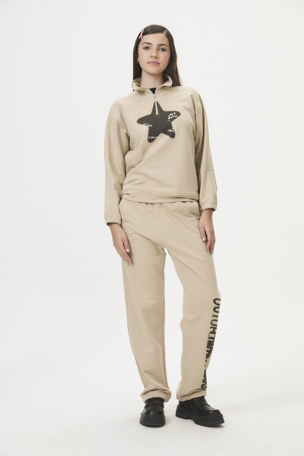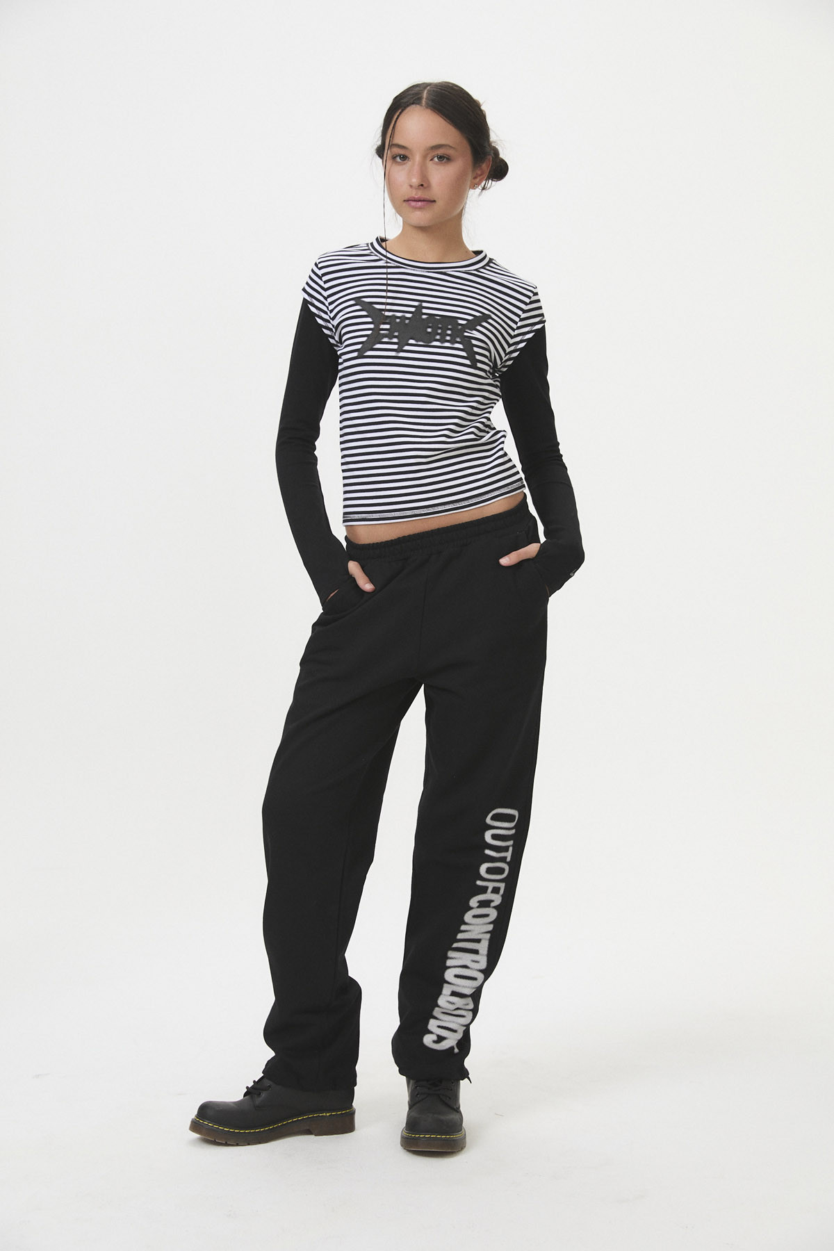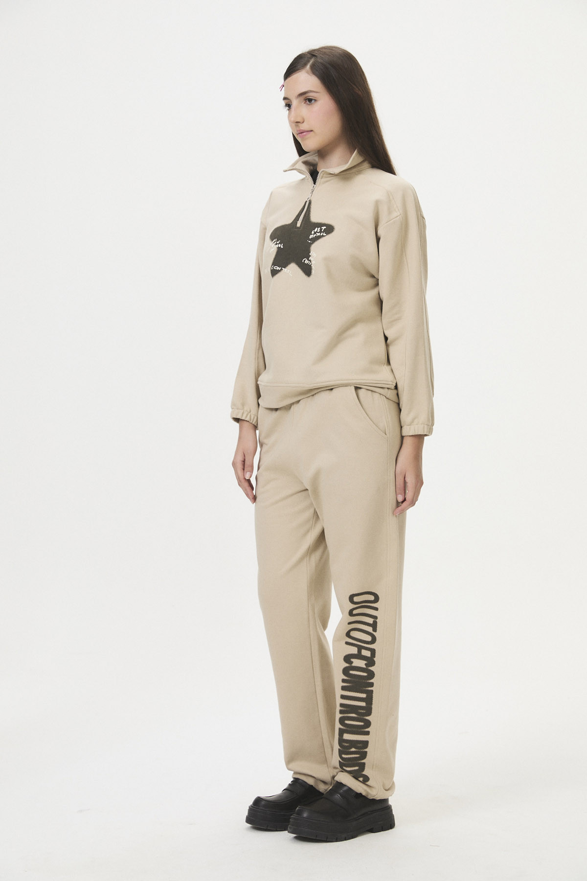 Este pantalón de rústico 100% algodón peinado 24/1, presenta el confort del elástico en cintura y botamangas, ideal para un estilo urbano y de transición. Con un estampado único en una pierna, forma parte de la cápsula OUT OF CONTROL, que representa ese momento de búsqueda de identidad y sensación de que “mamá y papá no entienden nada”. Disponible en curva de talles pares.