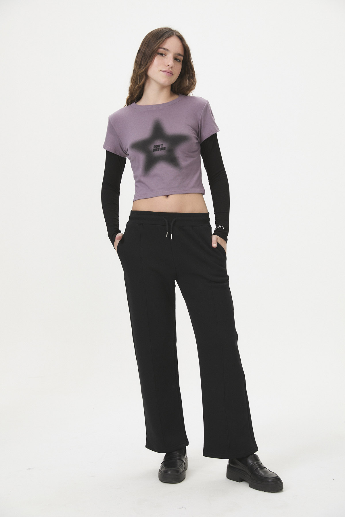 Pantalón de frisa confeccionado con un 85% de algodón y 15% de poliéster, ideal para la transición entre lo urbano y los primeros momentos de salida. Presenta una cintura ancha de morley en combinación, un corte recto y piernas traseras estampadas. Diseñado en una curva de talles pares, este jogger forma parte de la cápsula “OUT OF CONTROL”, reflejando esa búsqueda de identidad y el sentimiento de que “todo se siente fuera de control” con ilustraciones borrosas, irregulares y desordenadas. Es la prenda perfecta para esos cambios que se están viviendo, ofreciendo comodidad mientras exploras tu propia libertad.