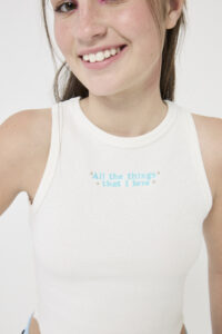 UNA MUSCULOSA EN COOL DE ALGODÓN BIFAZ, CON EXCLUSIVO BORDADO EN EL DELANTERO.