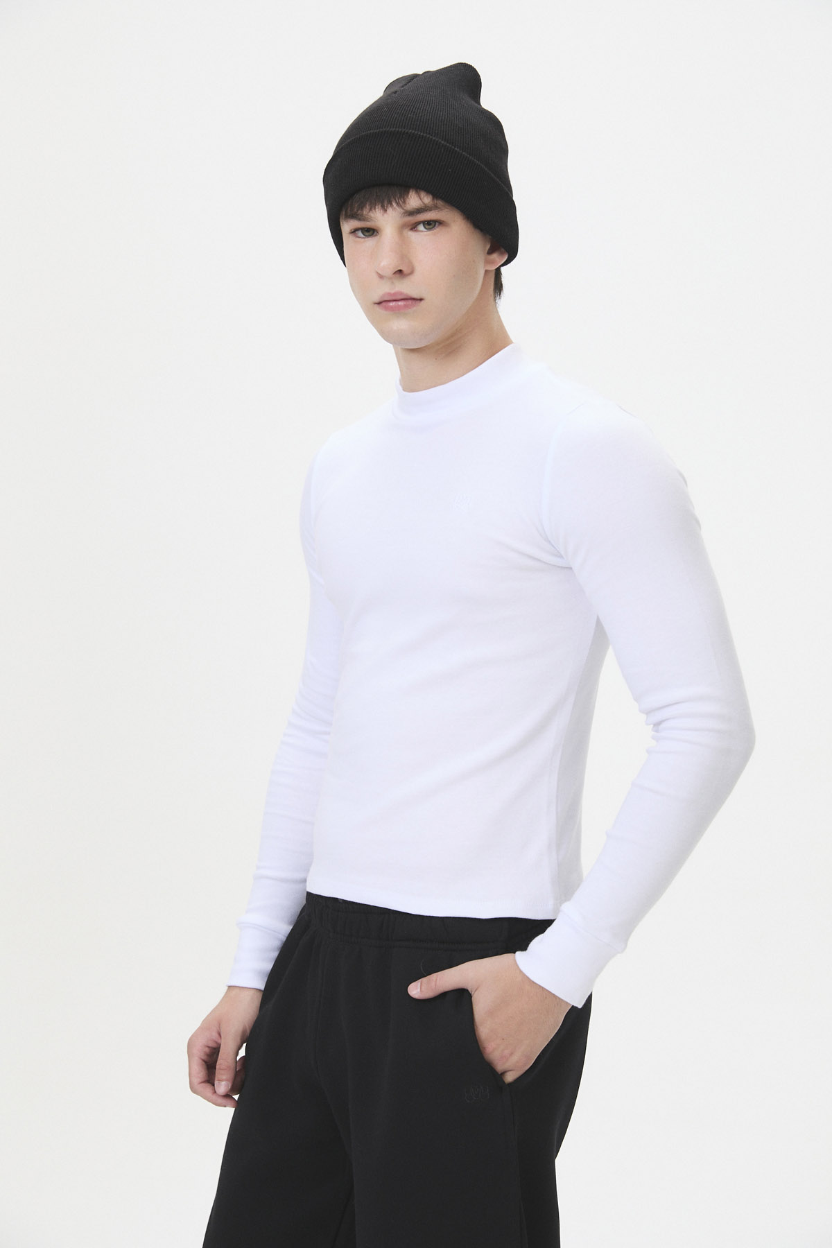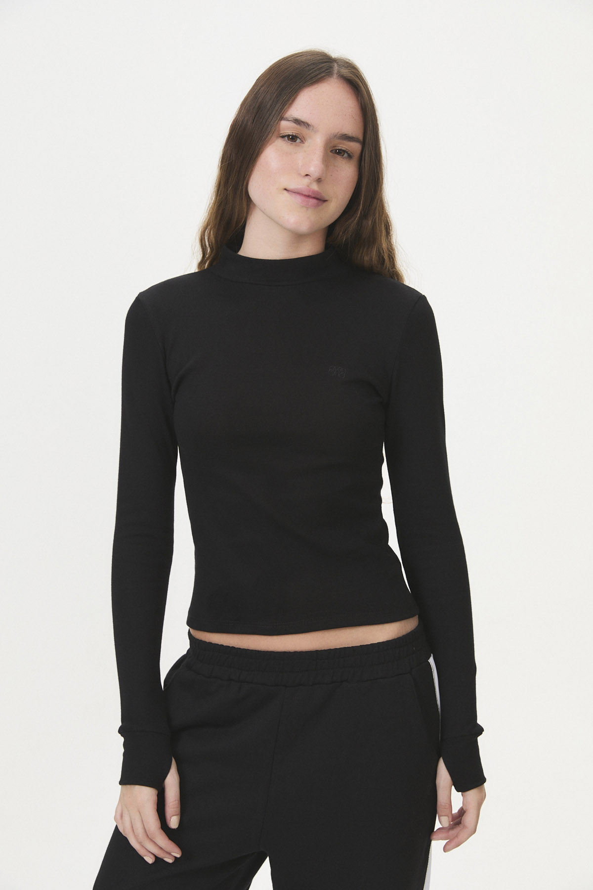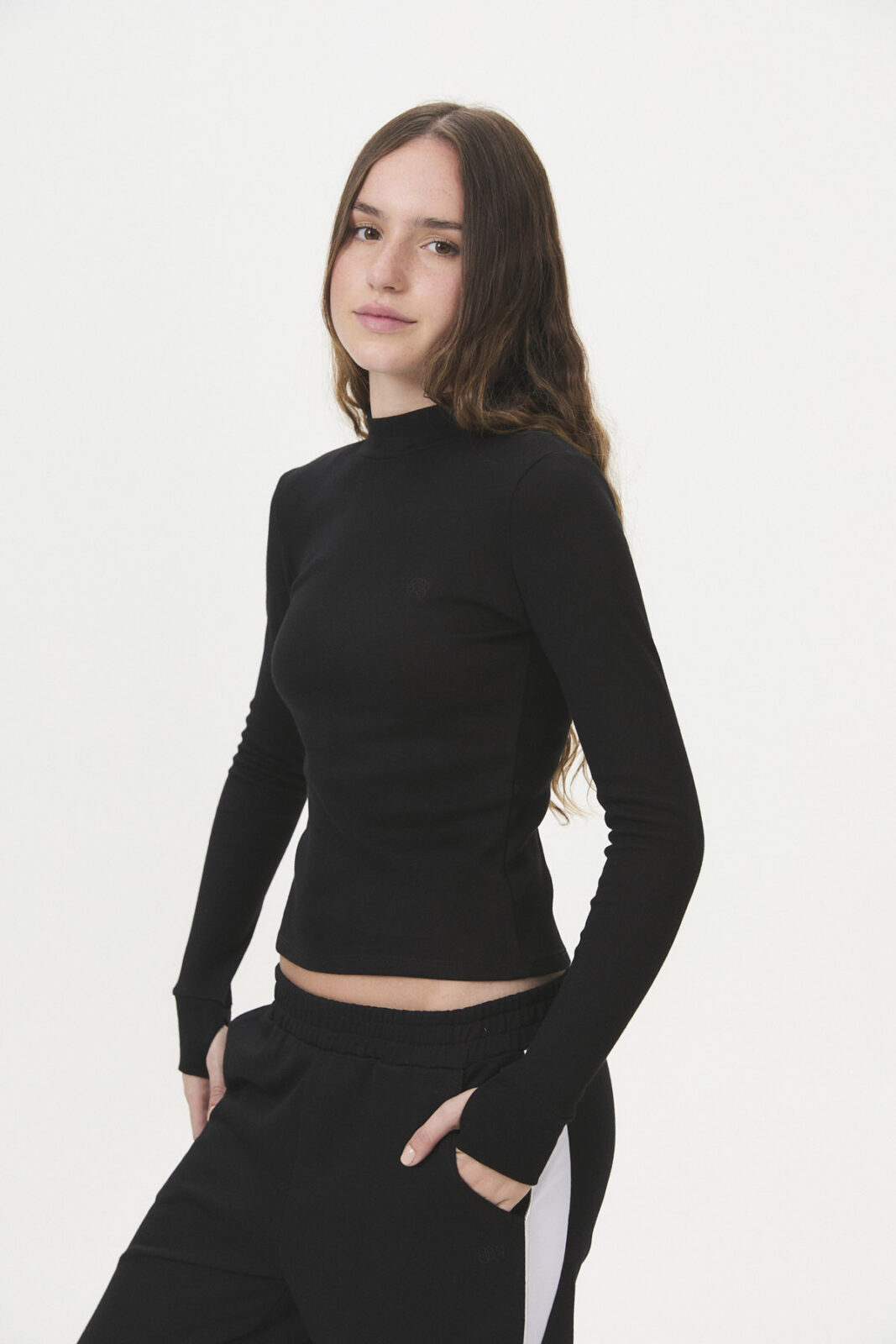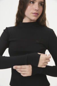 Un esencial de manga larga con cuello media polera, diseñado pensando en la comodidad. Confeccionada en interlock de algodón peinado 30/1 100% algodón, esta prenda ofrece una sensación amigable con la piel, ideal para sentirse cuidada y segura. Incluye puños con abertura para pasar el dedo, añadiendo un detalle sutil y funcional. Pertenece a la cápsula BASE, una línea de básicos que prioriza textiles de calidad y un calce excelente, sin etiquetas que generen incomodidad, y disponible en curva de talles pares.