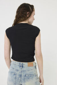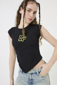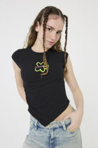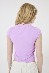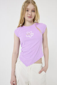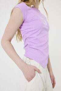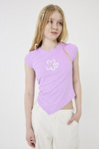 UNA REMERA EN MORLEY SOFT DE POLIESTER, DE MANGA SÚPER CORTITA. LARGO IRREGULAR Y LATERAL CON FRUNCE, VIENE CON UNA ESTAMPA ORIGINAL Y EXCLUSIVA EN EL DELANTERO.
