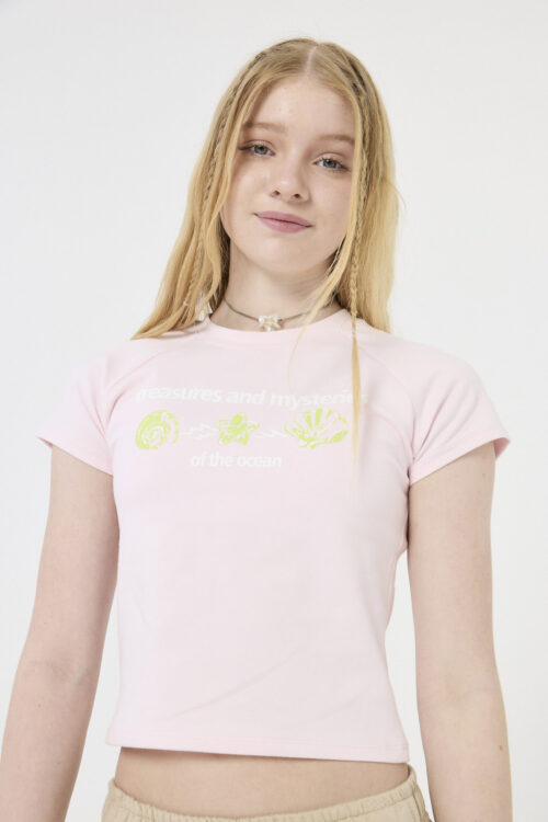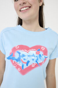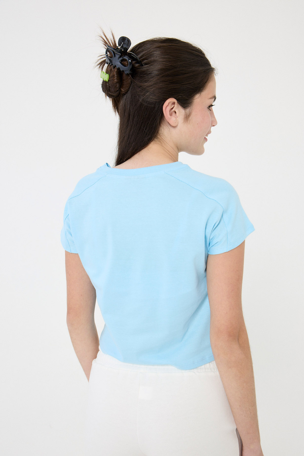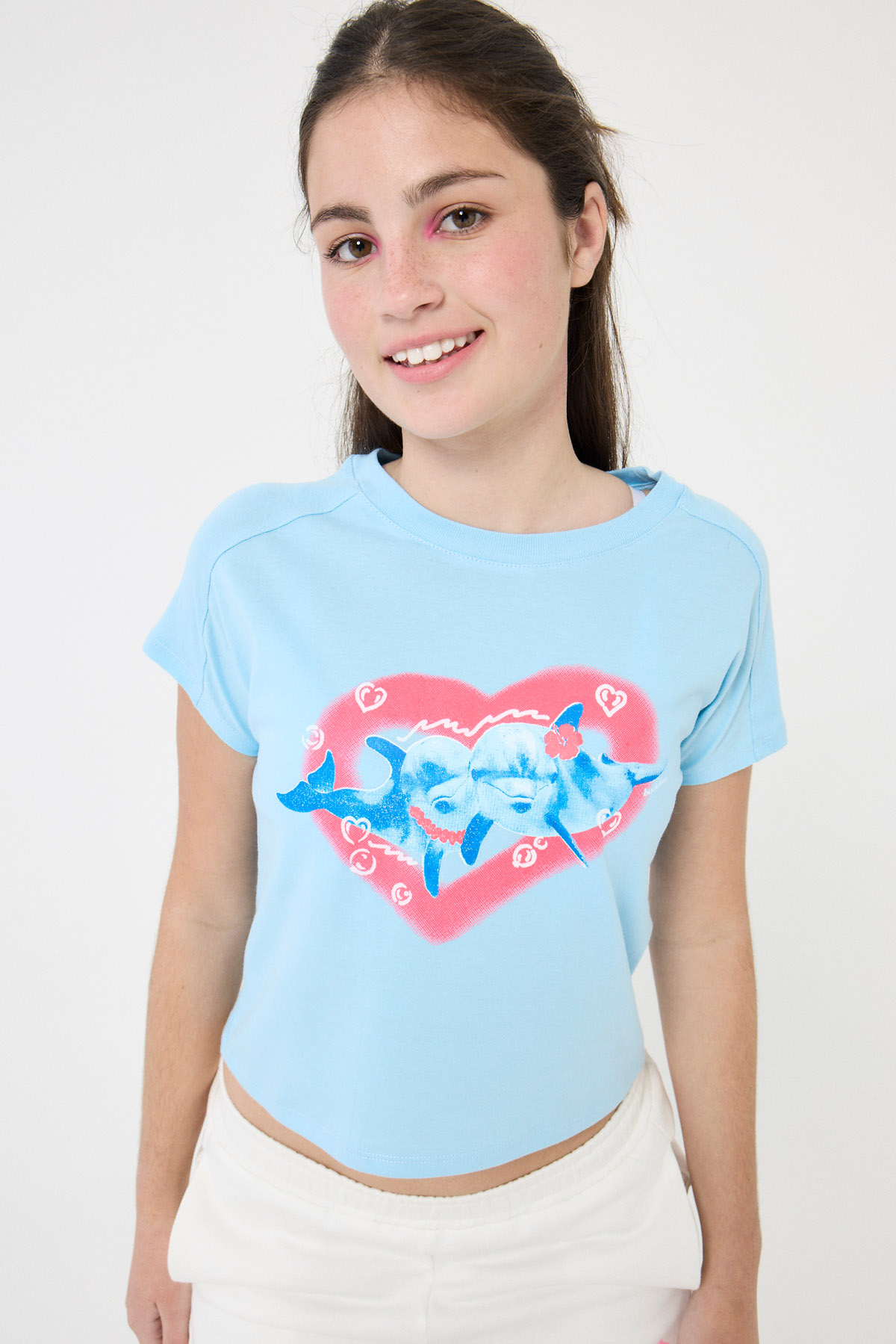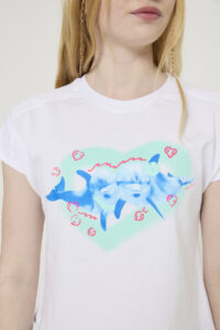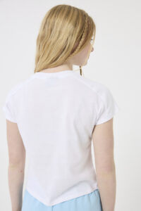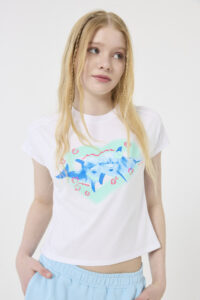 UNA REMERA EN JERSEY DE ALGODÓN DE MANGA JAPONESA, CORTE RAGLAN COMBINADA CON RIB. Y EXCLUSIVA ESTAMPA DELANTERA.