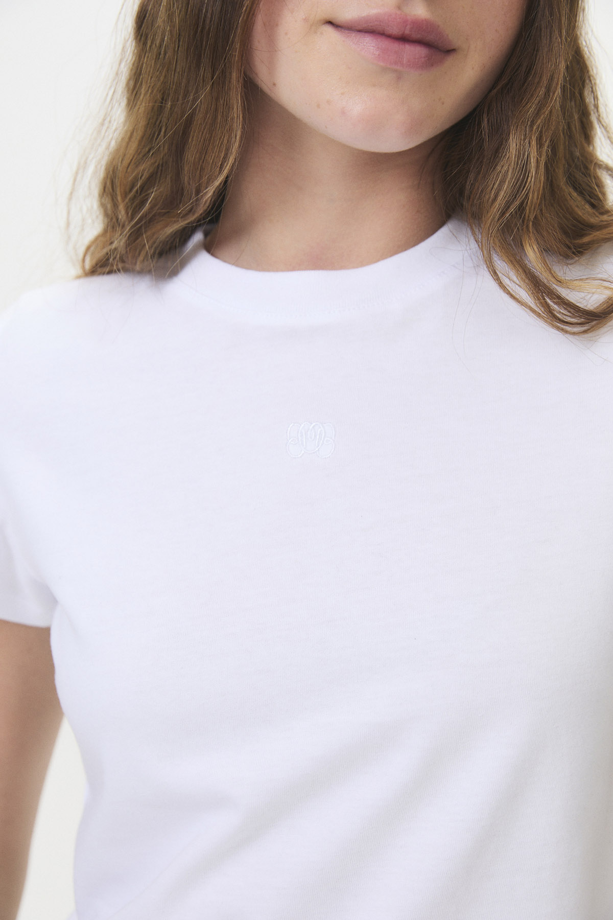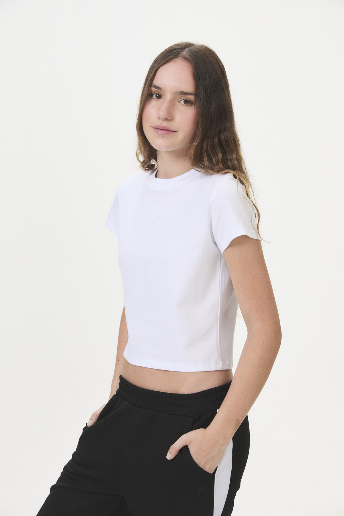 Una prenda básica de corte baby-t, ideal como comodín, confeccionada en suave jersey de algodón peinado 30/1 para brindar máxima comodidad y bienestar. Presenta un logo bordado sutil en el delantero y está disponible en curva de talles pares, asegurando que te sientas cuidada y segura, sin etiquetas que incomoden. Pertenece a la línea Base, que se centra en básicos de calidad y detalles amigables con la piel.