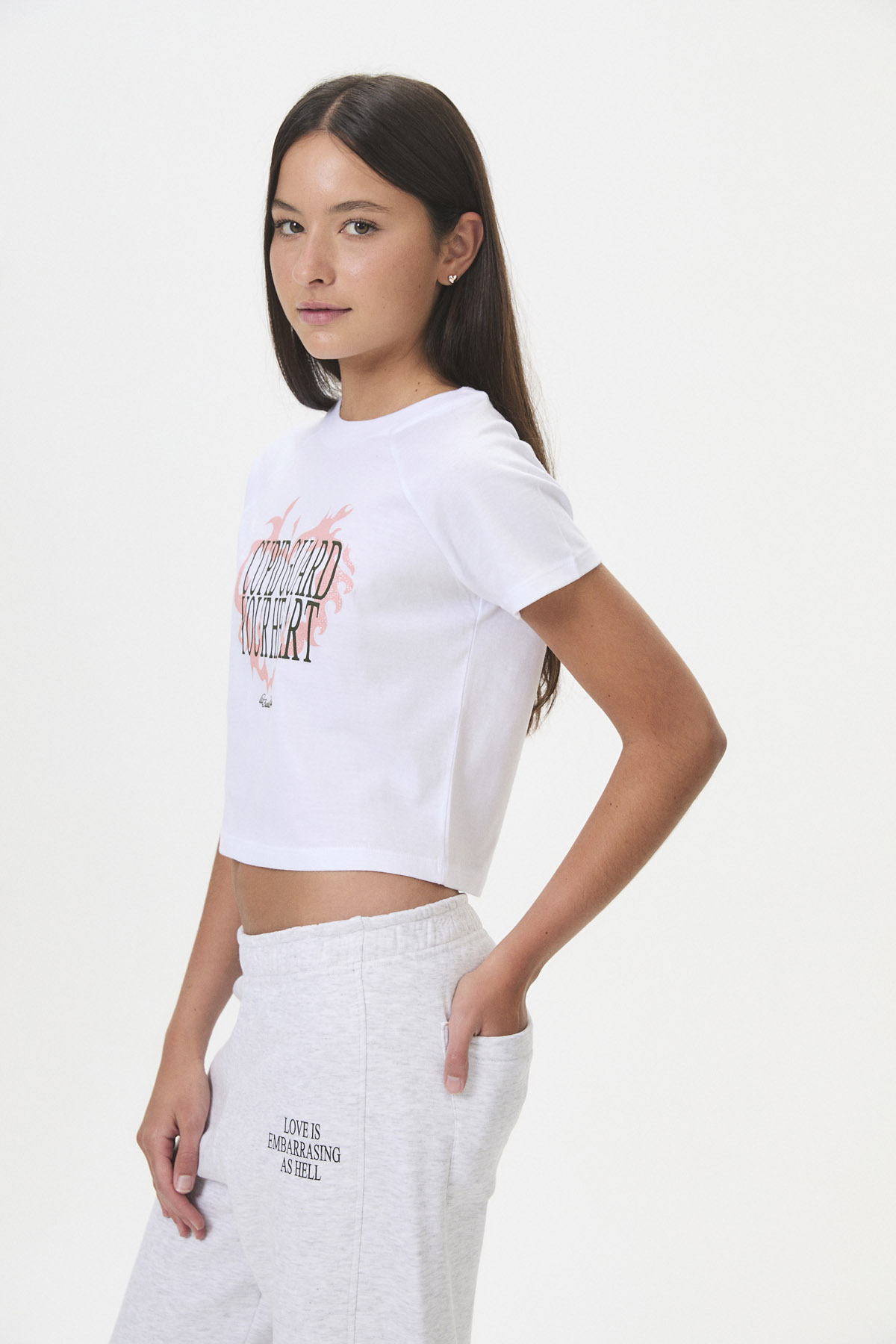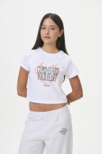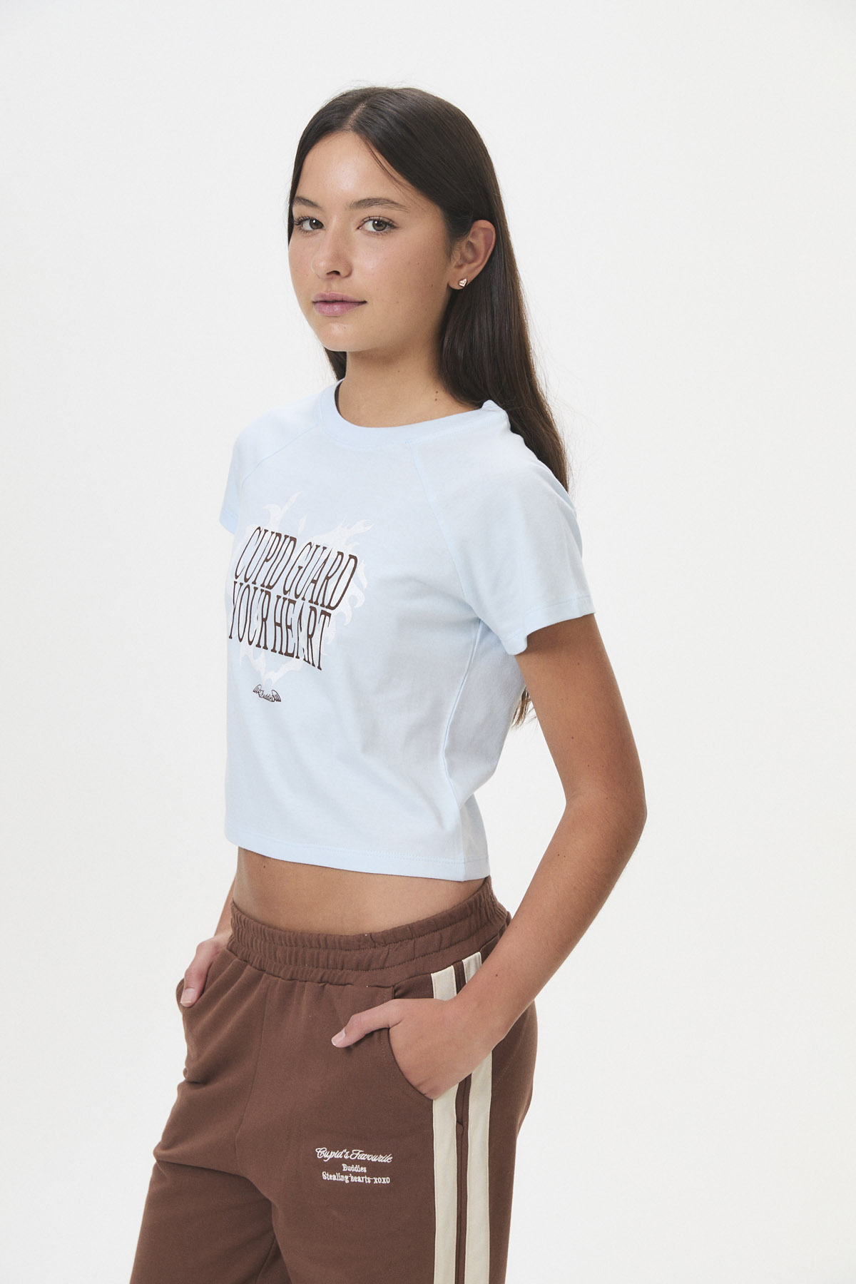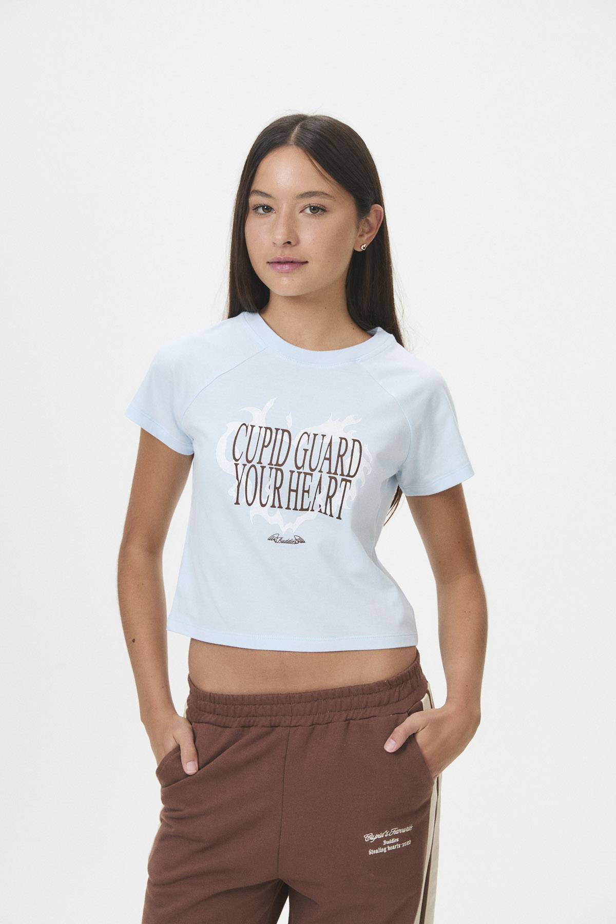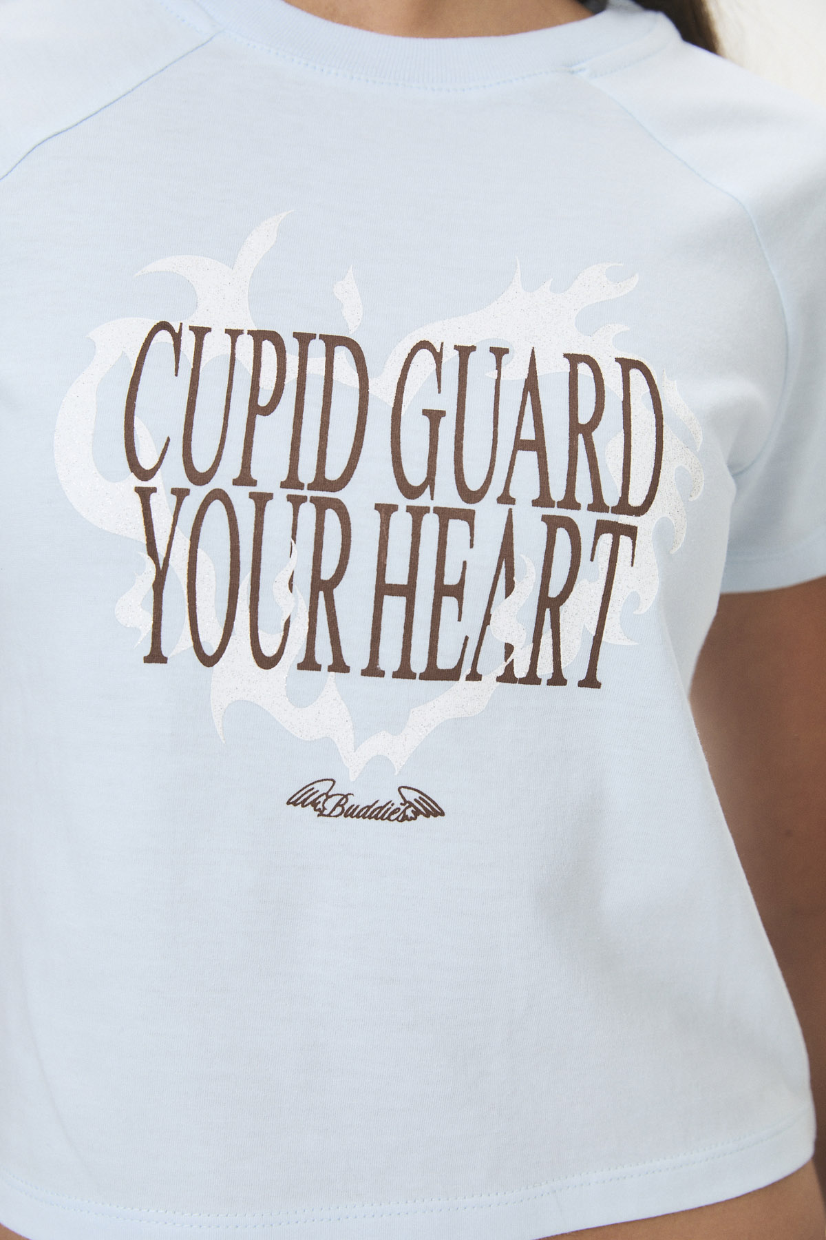 Confeccionada en suave jersey de algodón peinado 30/1, esta remera de manga corta y corte ranglan ofrece un estilo comfy y casual, ideal para esos días en que las emociones son nuevas y un poco vergonzosas. Presenta un estampado frontal con glitter, y su curva de talles pares se adapta a un fit relajado. Inspirada en los flechazos de Cupido, es perfecta para lucir un look girly con toques tipográficos y “varsity”.