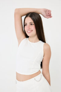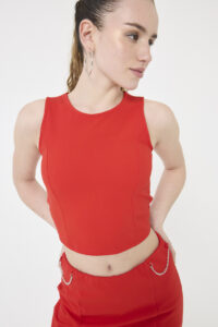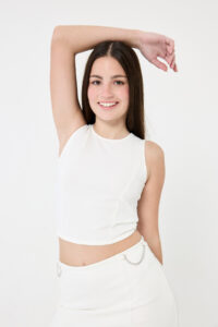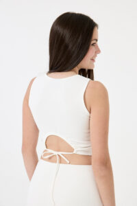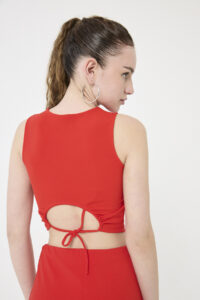 UN TOP CON CORTE DIOR, EN SCUBA CREPE, CON DETALLE CUT OUT EN LA ESPALDA Y TIRITA PARA ATAR. COMBINA A LA PERFECCIÓN CON LA FALDA MERRY.