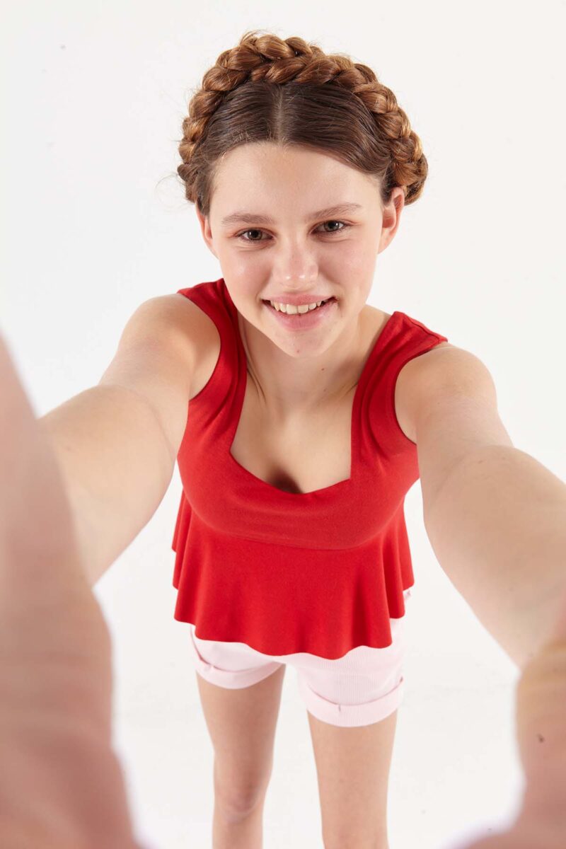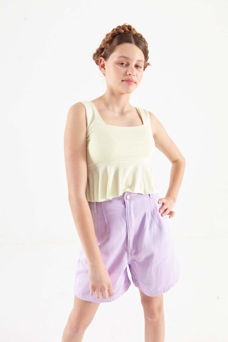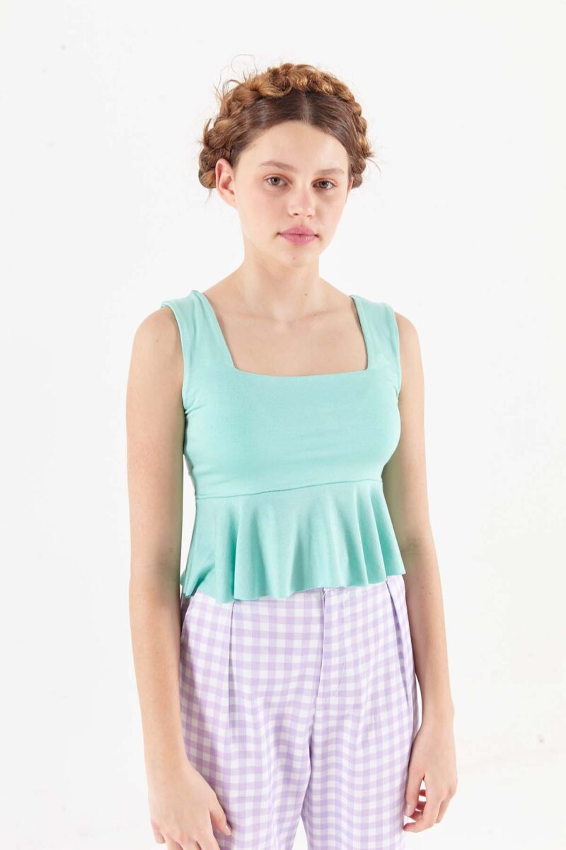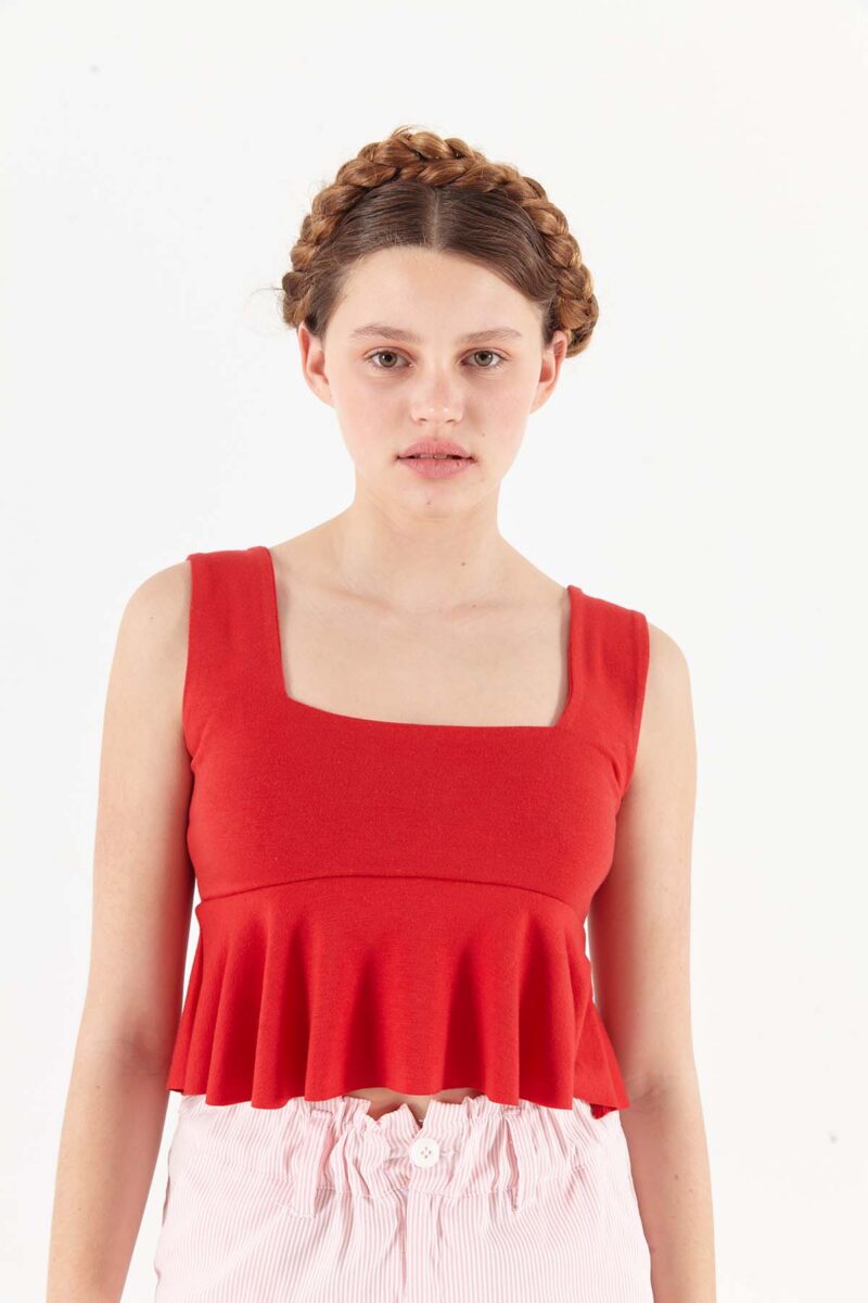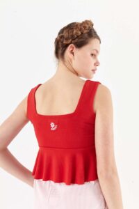 Todos buscan un lugar al aire libre, el sol está brillando y los parques son el lugar elegido. Esta musculosa está hecha para usar en climas cálidos. Una prenda super fresca con delatlles que le agregan un toque femenino.